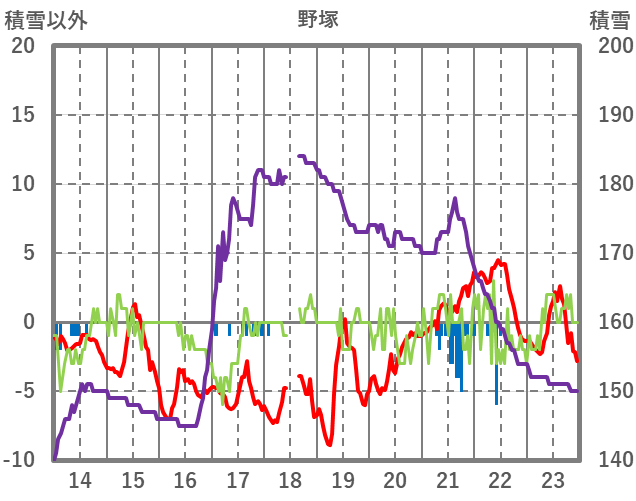 | 日 | 時 | 気温 | 降水 | 風向/風速 | 日照 | 積雪 | 降雪 |