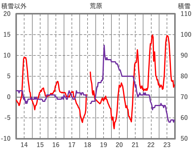 | 日 | 時 | 気温 | 降水 | 風向/風速 | 日照 | 積雪 | 降雪 |