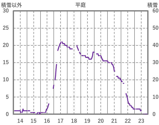 | 日 | 時 | 気温 | 降水 | 風向/風速 | 日照 | 積雪 | 降雪 |