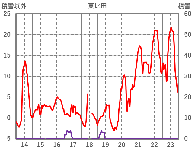 | 日 | 時 | 気温 | 降水 | 風向/風速 | 日照 | 積雪 | 降雪 |