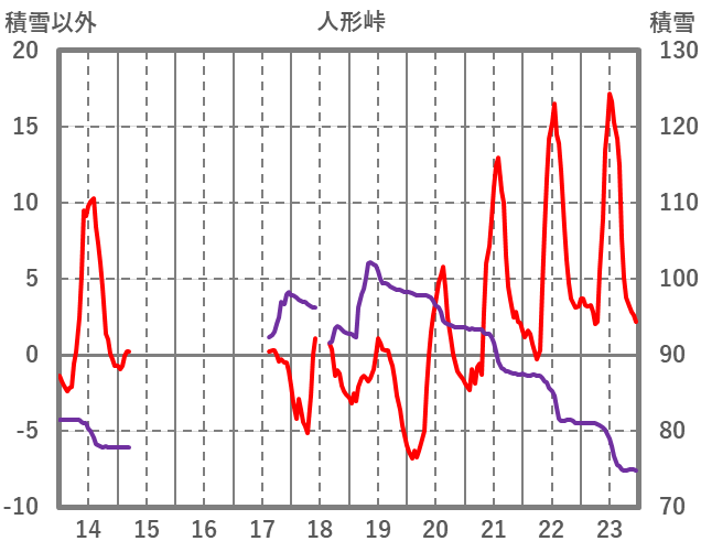 | 日 | 時 | 気温 | 降水 | 風向/風速 | 日照 | 積雪 | 降雪 |