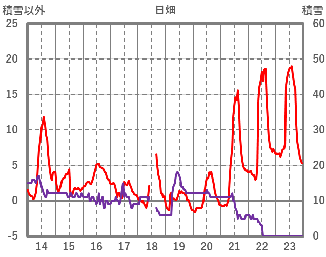 | 日 | 時 | 気温 | 降水 | 風向/風速 | 日照 | 積雪 | 降雪 |