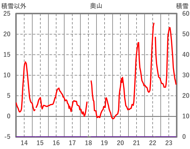 | 日 | 時 | 気温 | 降水 | 風向/風速 | 日照 | 積雪 | 降雪 |