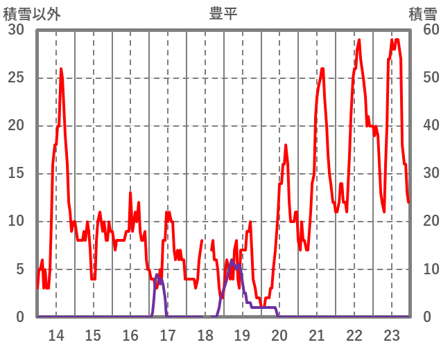 | 日 | 時 | 気温 | 降水 | 風向/風速 | 日照 | 積雪 | 降雪 |