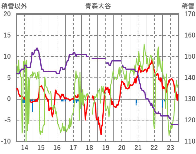 | 日 | 時 | 気温 | 降水 | 風向/風速 | 日照 | 積雪 | 降雪 |