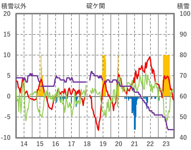 | 日 | 時 | 気温 | 降水 | 風向/風速 | 日照 | 積雪 | 降雪 |