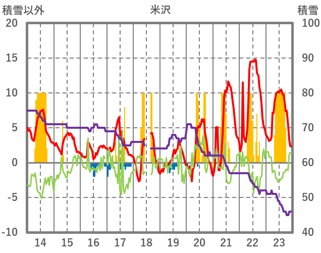 | 日 | 時 | 気温 | 降水 | 風向/風速 | 日照 | 積雪 | 降雪 |