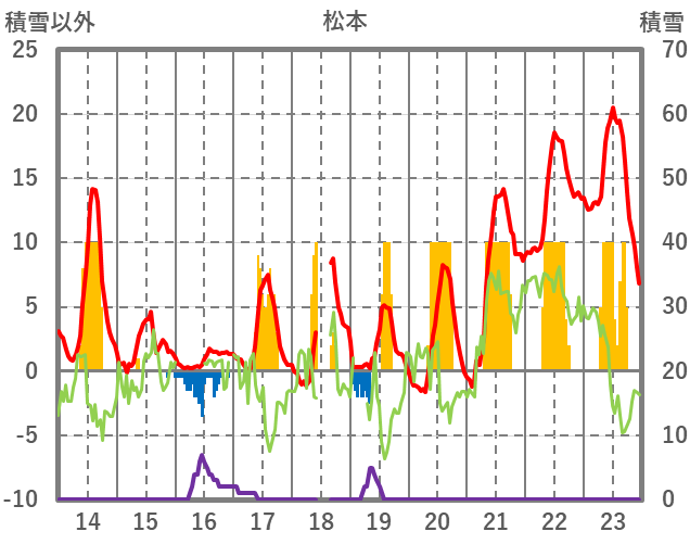 | 日 | 時 | 気温 | 降水 | 風向/風速 | 日照 | 積雪 | 降雪 |