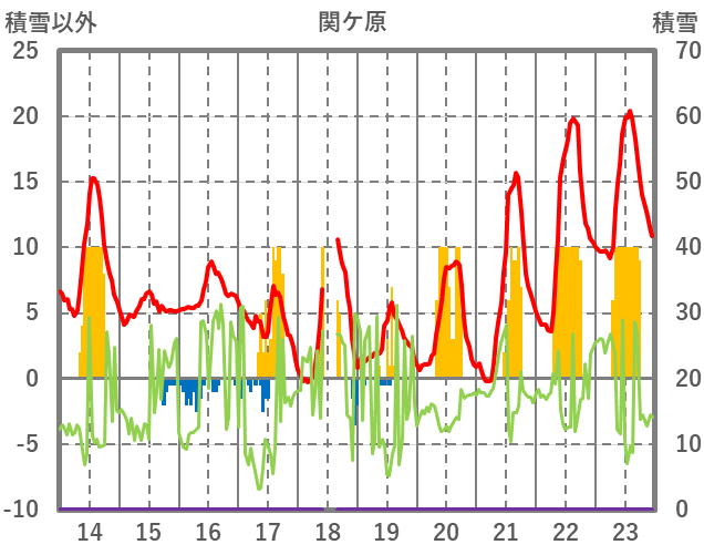 | 日 | 時 | 気温 | 降水 | 風向/風速 | 日照 | 積雪 | 降雪 |