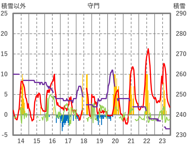 | 日 | 時 | 気温 | 降水 | 風向/風速 | 日照 | 積雪 | 降雪 |