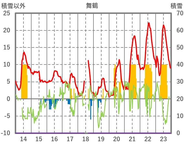 | 日 | 時 | 気温 | 降水 | 風向/風速 | 日照 | 積雪 | 降雪 |