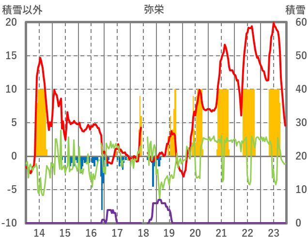| 日 | 時 | 気温 | 降水 | 風向/風速 | 日照 | 積雪 | 降雪 |