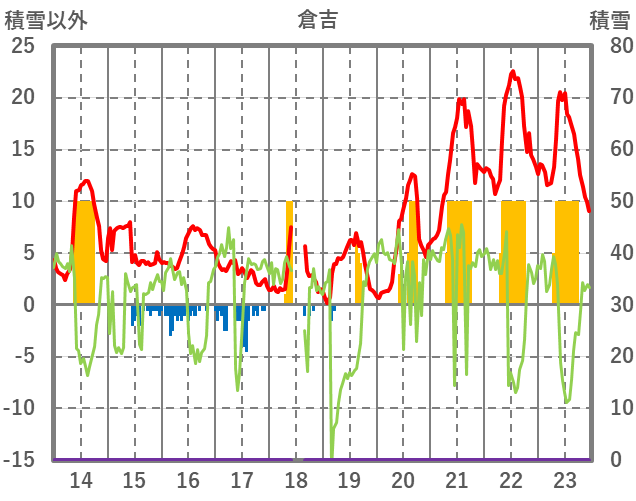 | 日 | 時 | 気温 | 降水 | 風向/風速 | 日照 | 積雪 | 降雪 |