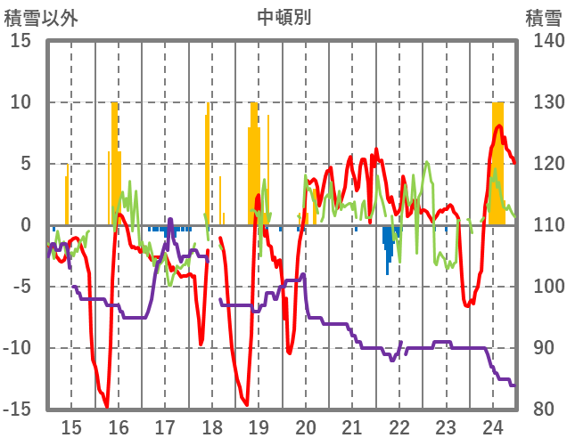 | 日 | 時 | 気温 | 降水 | 風向/風速 | 日照 | 積雪 | 降雪 |