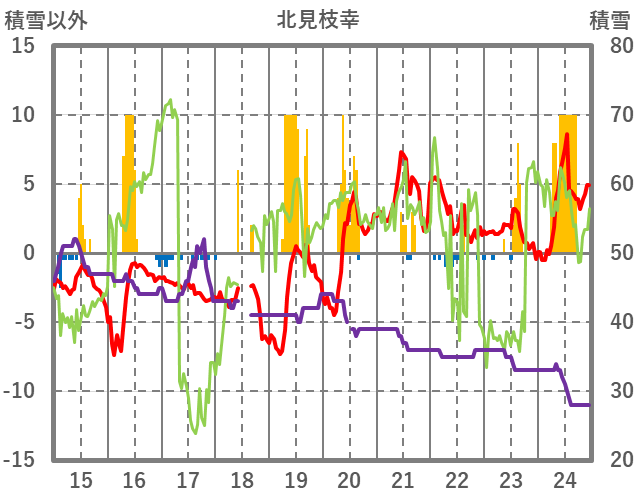 | 日 | 時 | 気温 | 降水 | 風向/風速 | 日照 | 積雪 | 降雪 |