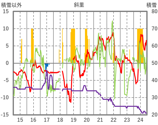 | 日 | 時 | 気温 | 降水 | 風向/風速 | 日照 | 積雪 | 降雪 |