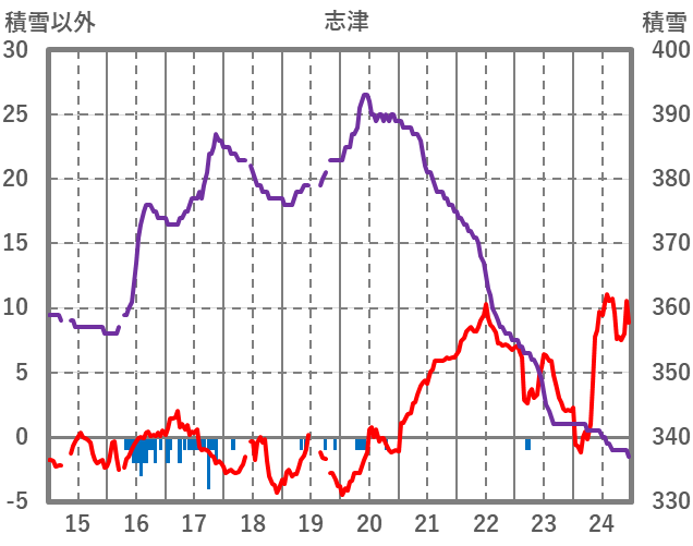 | 日 | 時 | 気温 | 降水 | 風向/風速 | 日照 | 積雪 | 降雪 |