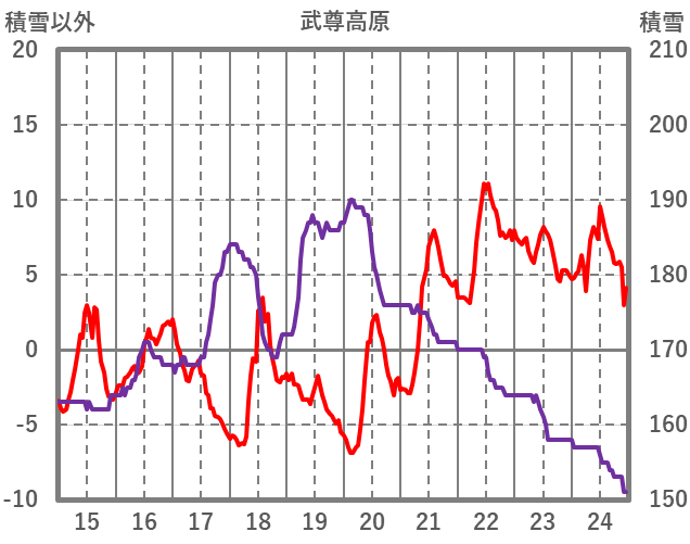 | 日 | 時 | 気温 | 降水 | 風向/風速 | 日照 | 積雪 | 降雪 |