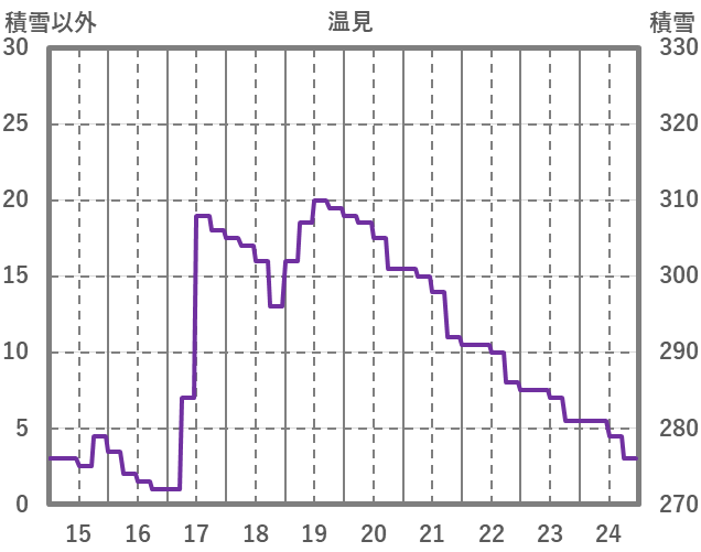 | 日 | 時 | 気温 | 降水 | 風向/風速 | 日照 | 積雪 | 降雪 |