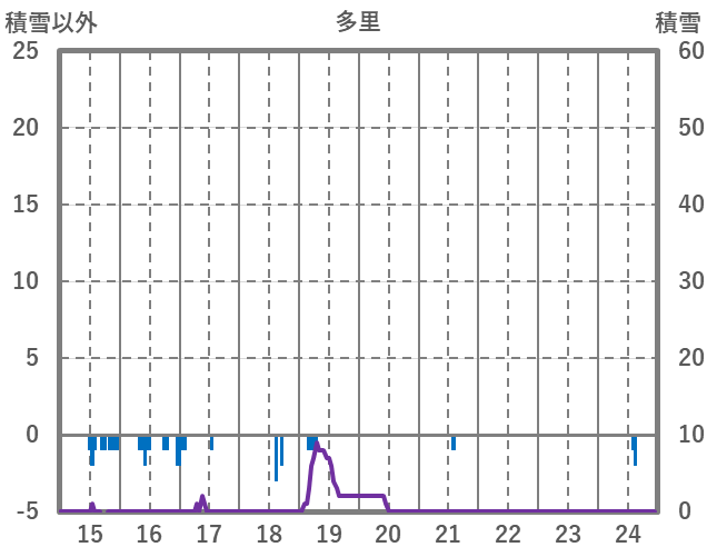 | 日 | 時 | 気温 | 降水 | 風向/風速 | 日照 | 積雪 | 降雪 |