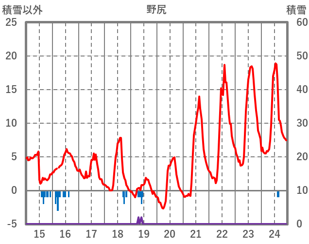 | 日 | 時 | 気温 | 降水 | 風向/風速 | 日照 | 積雪 | 降雪 |