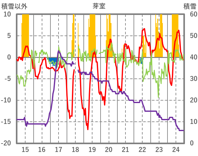 | 日 | 時 | 気温 | 降水 | 風向/風速 | 日照 | 積雪 | 降雪 |