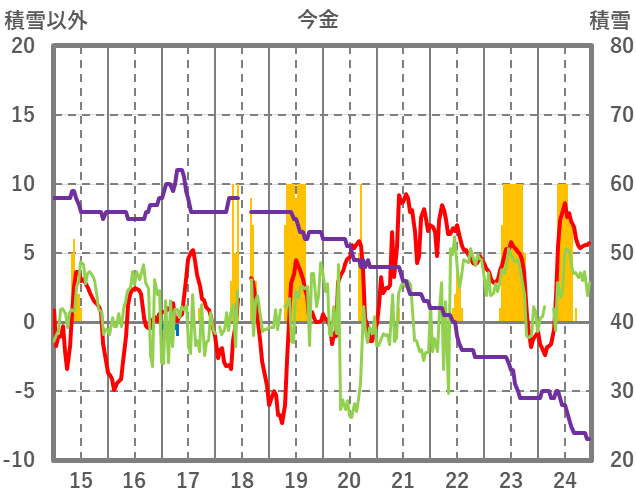 | 日 | 時 | 気温 | 降水 | 風向/風速 | 日照 | 積雪 | 降雪 |