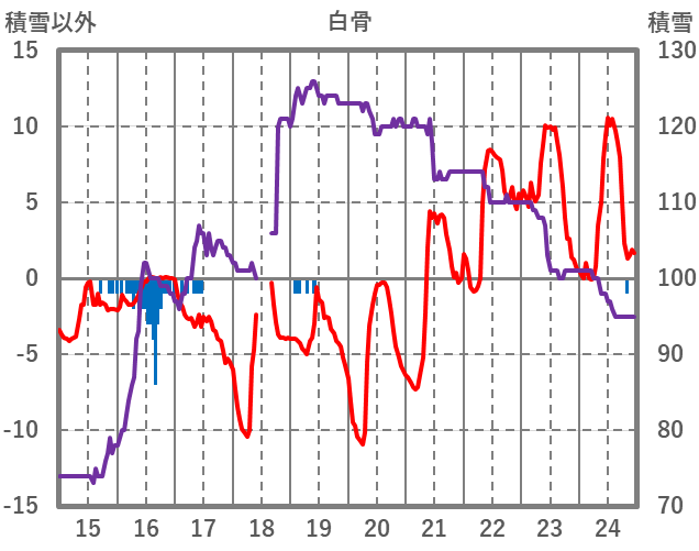 | 日 | 時 | 気温 | 降水 | 風向/風速 | 日照 | 積雪 | 降雪 |