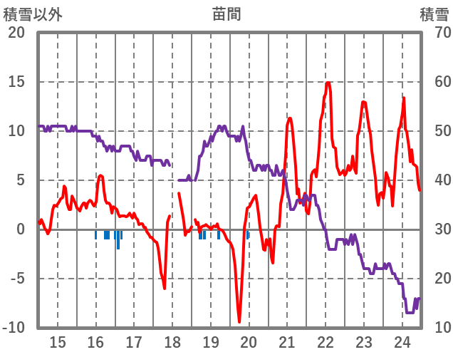 | 日 | 時 | 気温 | 降水 | 風向/風速 | 日照 | 積雪 | 降雪 |