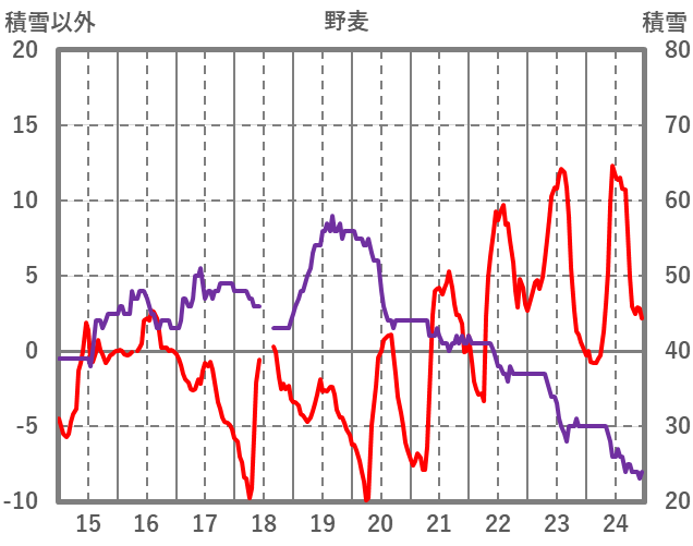 | 日 | 時 | 気温 | 降水 | 風向/風速 | 日照 | 積雪 | 降雪 |
