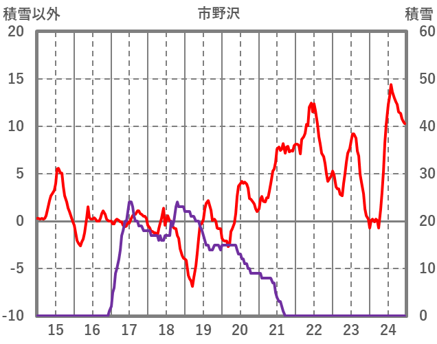 | 日 | 時 | 気温 | 降水 | 風向/風速 | 日照 | 積雪 | 降雪 |