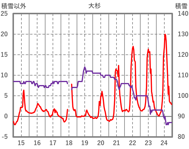 | 日 | 時 | 気温 | 降水 | 風向/風速 | 日照 | 積雪 | 降雪 |