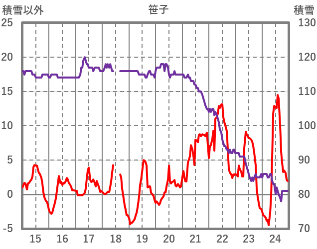 | 日 | 時 | 気温 | 降水 | 風向/風速 | 日照 | 積雪 | 降雪 |