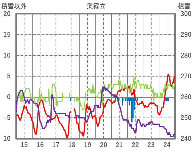 | 日 | 時 | 気温 | 降水 | 風向/風速 | 日照 | 積雪 | 降雪 |