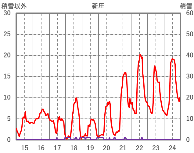| 日 | 時 | 気温 | 降水 | 風向/風速 | 日照 | 積雪 | 降雪 |