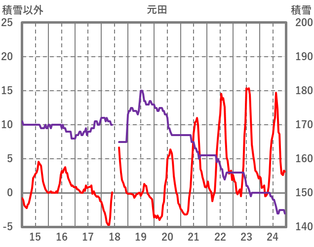 | 日 | 時 | 気温 | 降水 | 風向/風速 | 日照 | 積雪 | 降雪 |