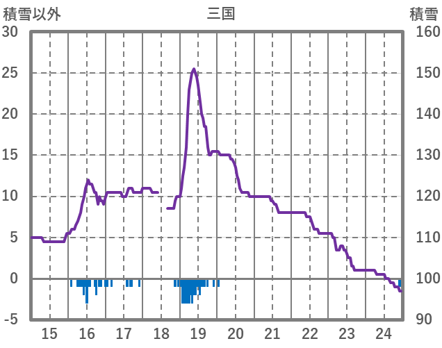 | 日 | 時 | 気温 | 降水 | 風向/風速 | 日照 | 積雪 | 降雪 |