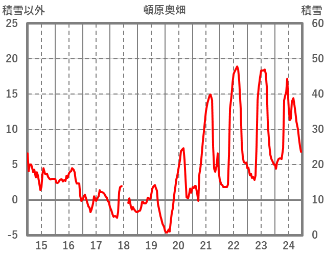 | 日 | 時 | 気温 | 降水 | 風向/風速 | 日照 | 積雪 | 降雪 |