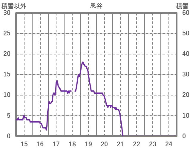 | 日 | 時 | 気温 | 降水 | 風向/風速 | 日照 | 積雪 | 降雪 |