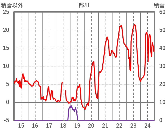 | 日 | 時 | 気温 | 降水 | 風向/風速 | 日照 | 積雪 | 降雪 |