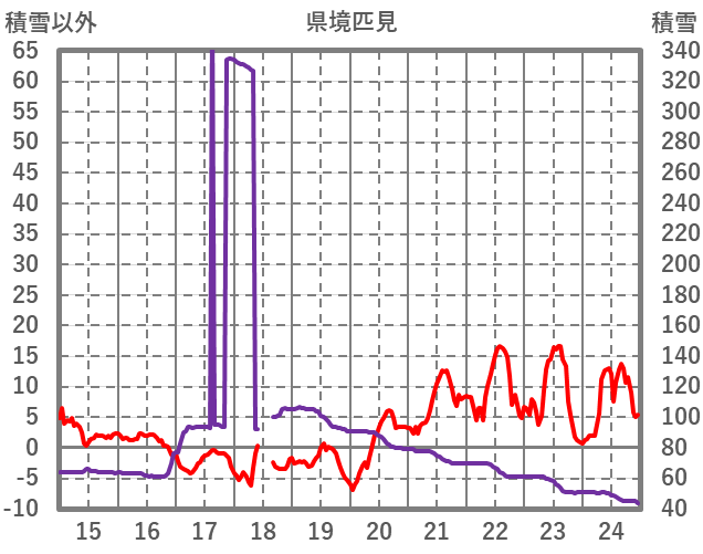 | 日 | 時 | 気温 | 降水 | 風向/風速 | 日照 | 積雪 | 降雪 |