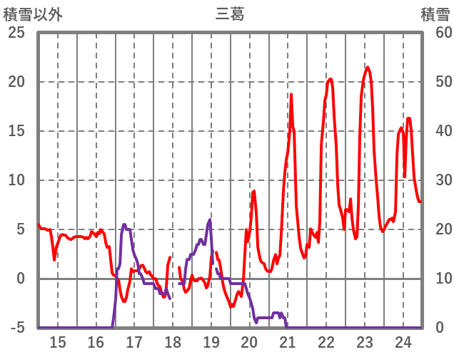 | 日 | 時 | 気温 | 降水 | 風向/風速 | 日照 | 積雪 | 降雪 |