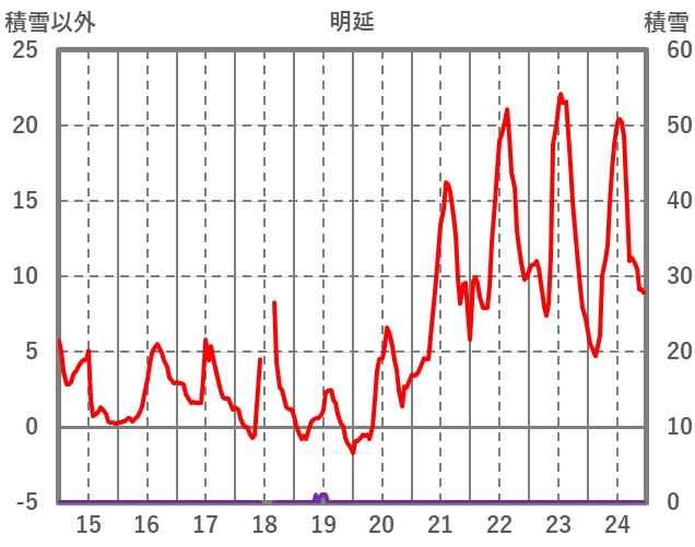 | 日 | 時 | 気温 | 降水 | 風向/風速 | 日照 | 積雪 | 降雪 |