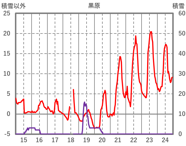 | 日 | 時 | 気温 | 降水 | 風向/風速 | 日照 | 積雪 | 降雪 |