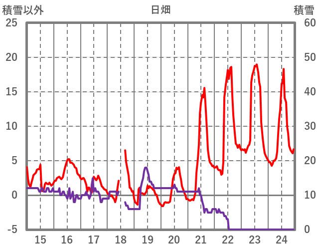 | 日 | 時 | 気温 | 降水 | 風向/風速 | 日照 | 積雪 | 降雪 |