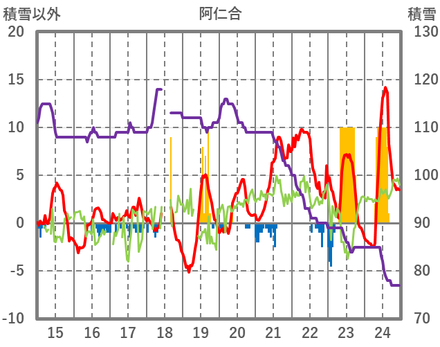 | 日 | 時 | 気温 | 降水 | 風向/風速 | 日照 | 積雪 | 降雪 |