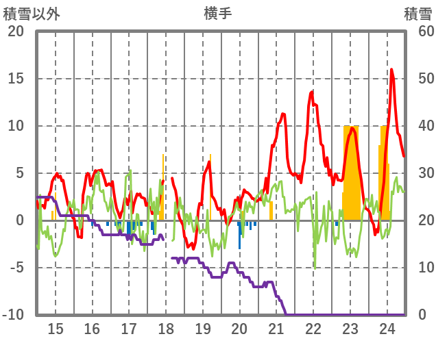 | 日 | 時 | 気温 | 降水 | 風向/風速 | 日照 | 積雪 | 降雪 |