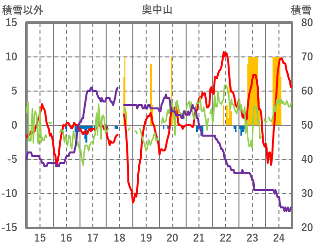 | 日 | 時 | 気温 | 降水 | 風向/風速 | 日照 | 積雪 | 降雪 |