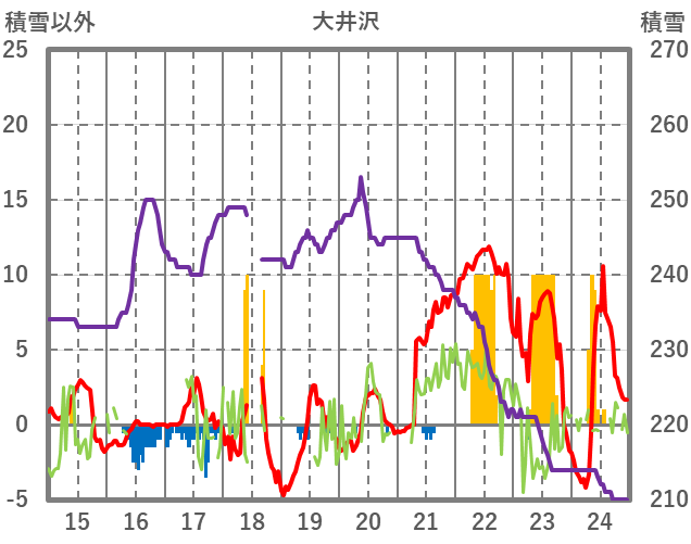 | 日 | 時 | 気温 | 降水 | 風向/風速 | 日照 | 積雪 | 降雪 |