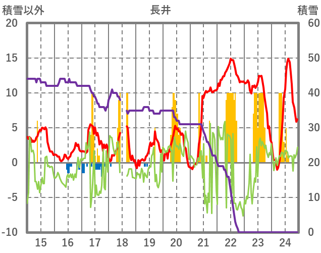 | 日 | 時 | 気温 | 降水 | 風向/風速 | 日照 | 積雪 | 降雪 |